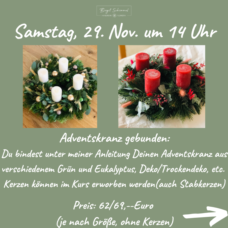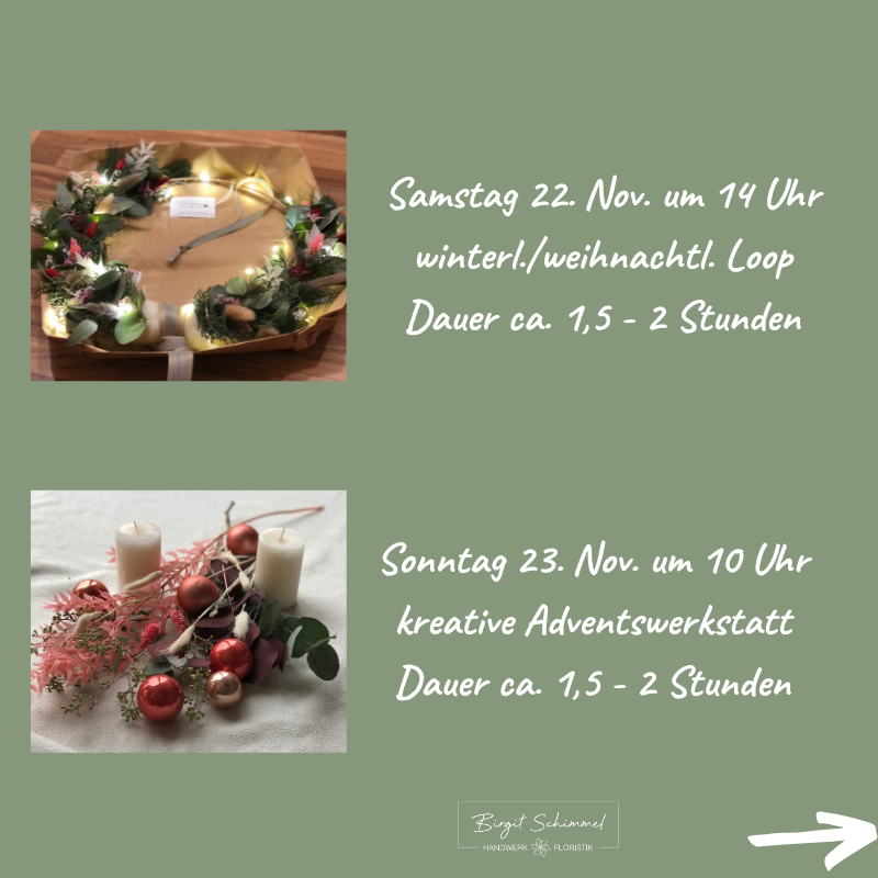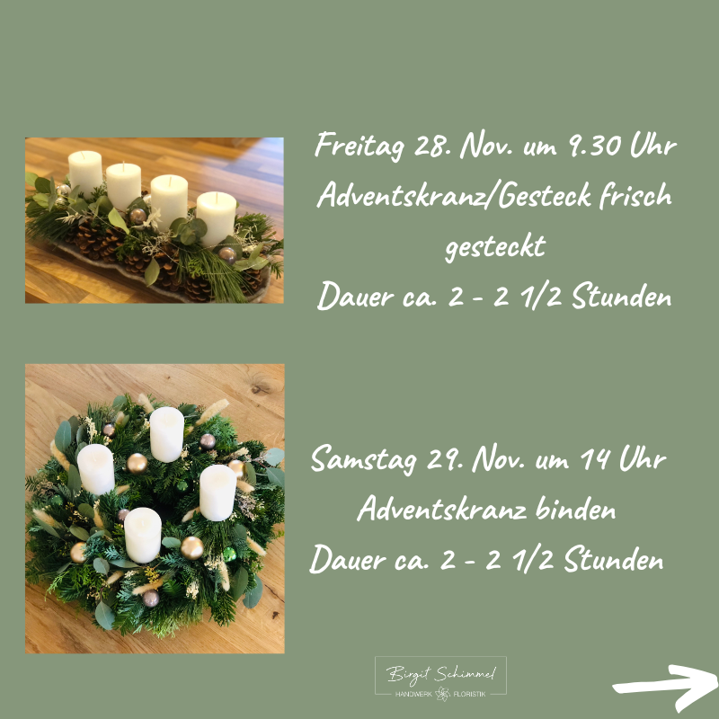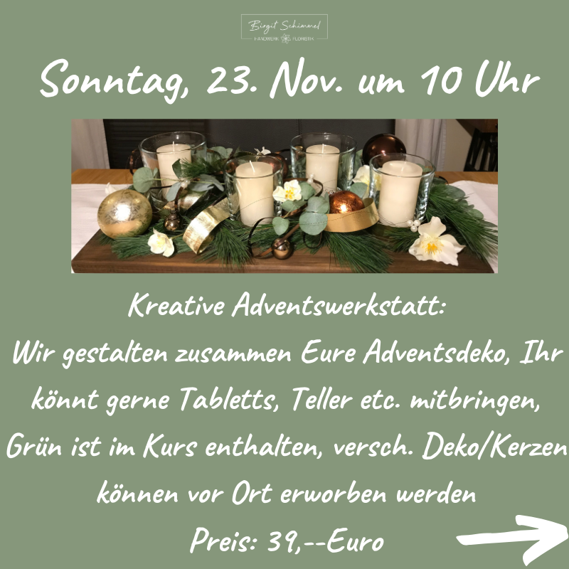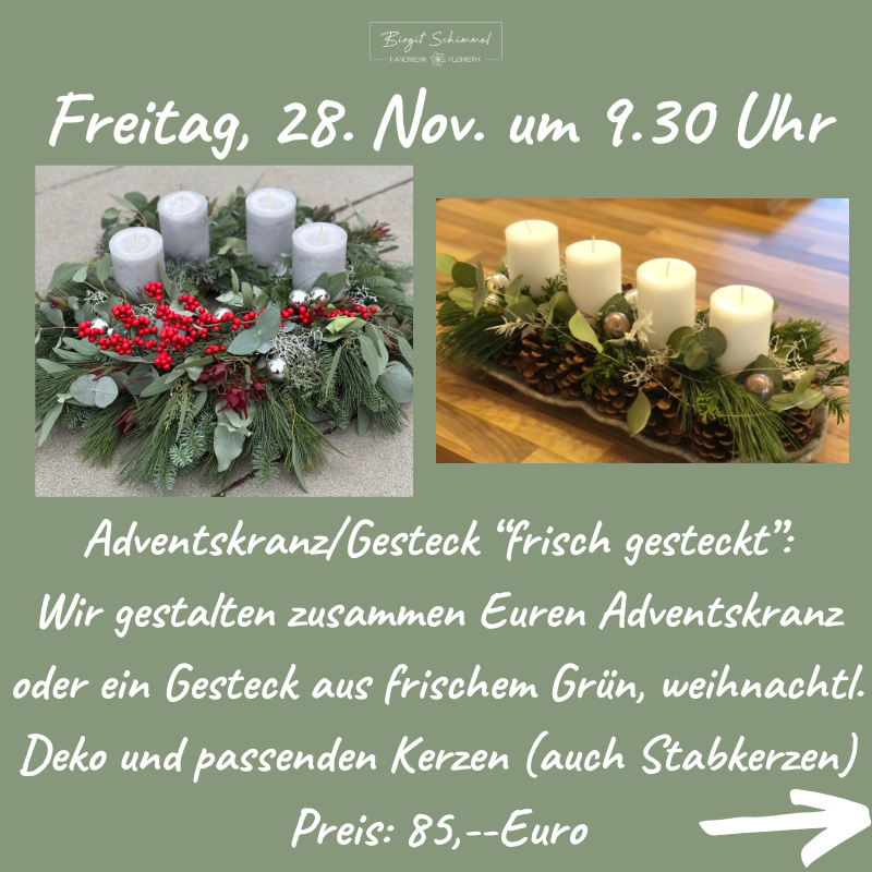 Gerne kannst Du wieder Deine Adventsdeko in kreativer Runde gestalten!
